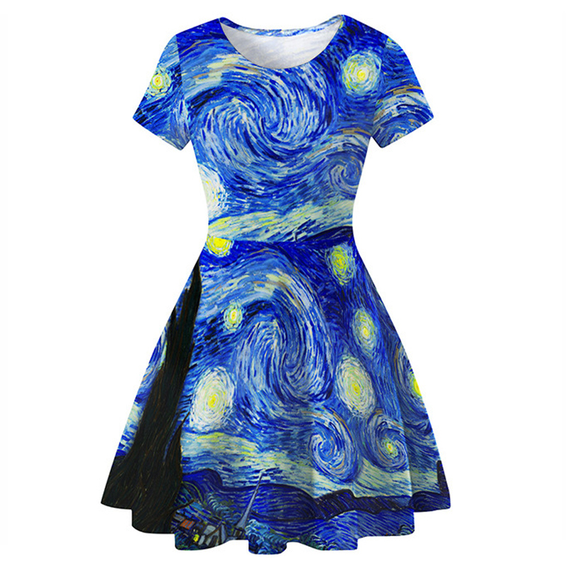 Van Gogh The Starry Night Print Dress For Women Street Galaxy Dress Girls Summer Cute Paint Style Dress