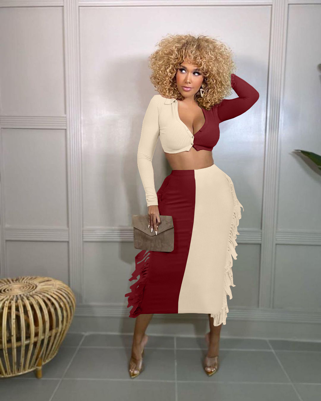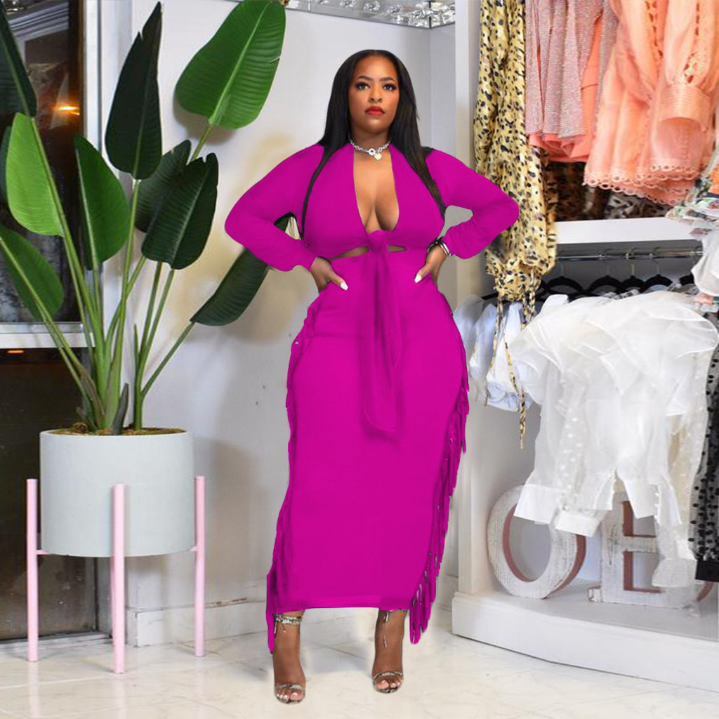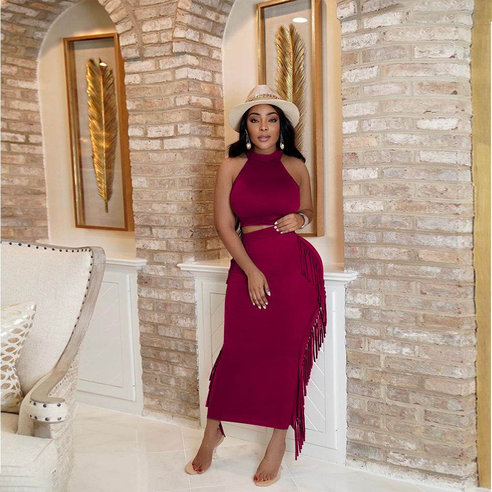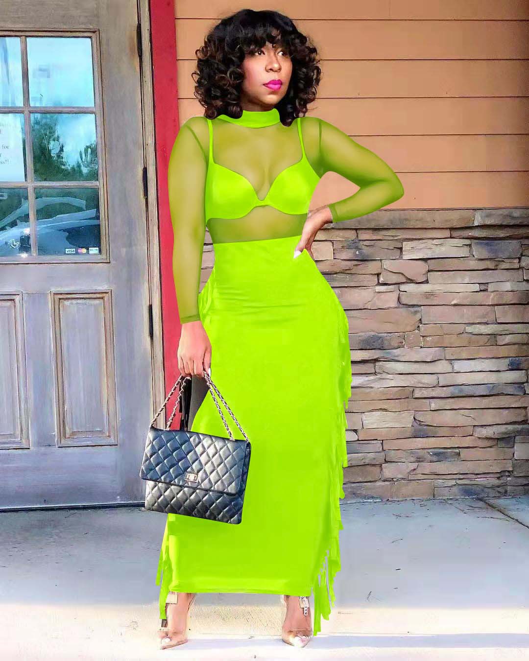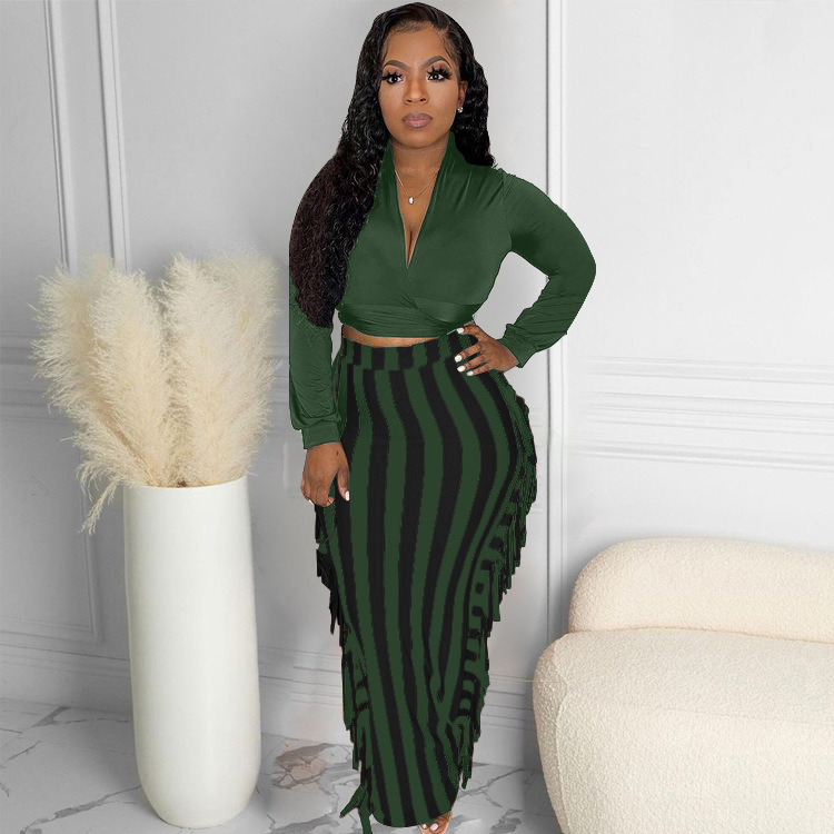 Vavcy spring autumn dress suit green t-shirt + wrinkle tassel sexy set
