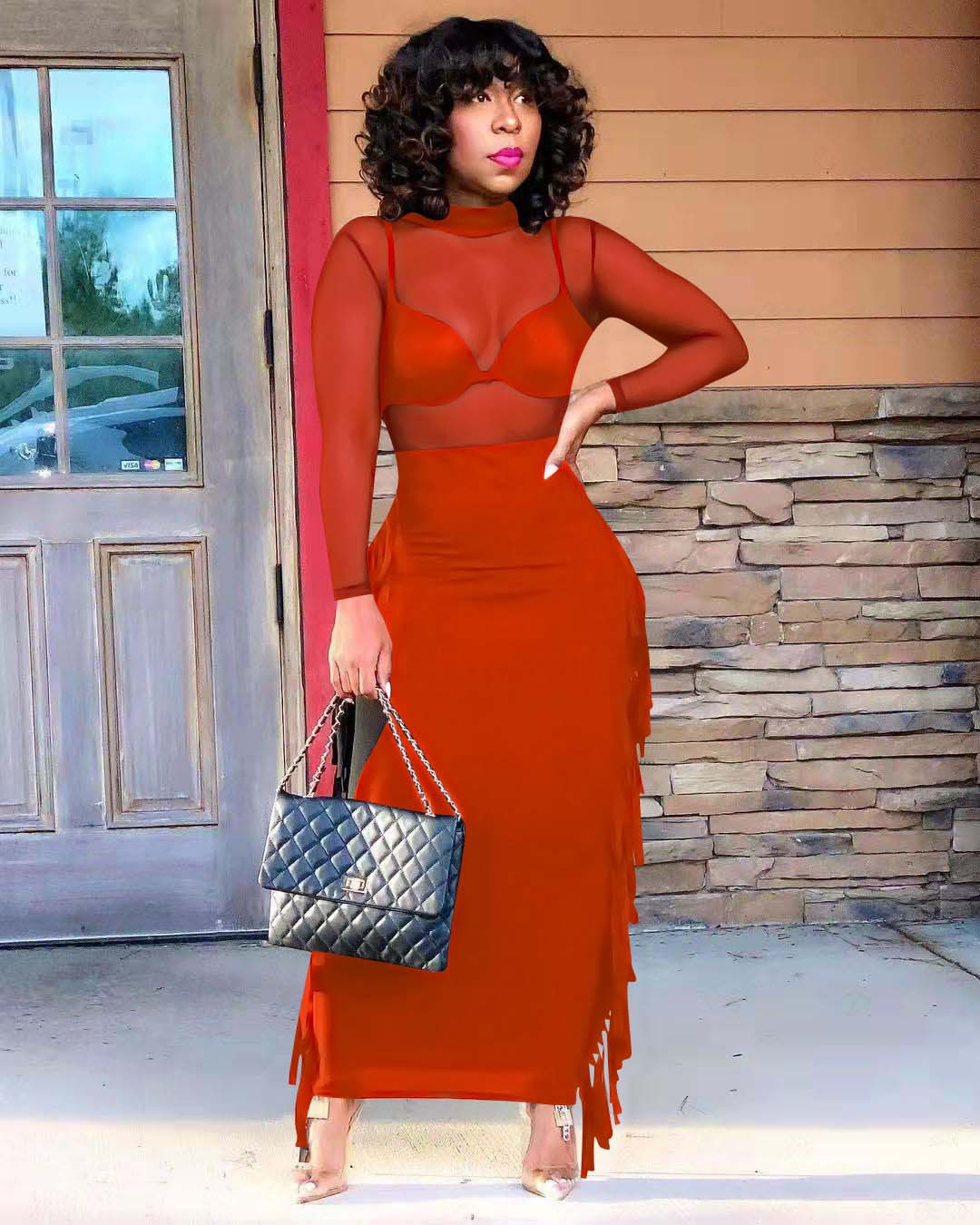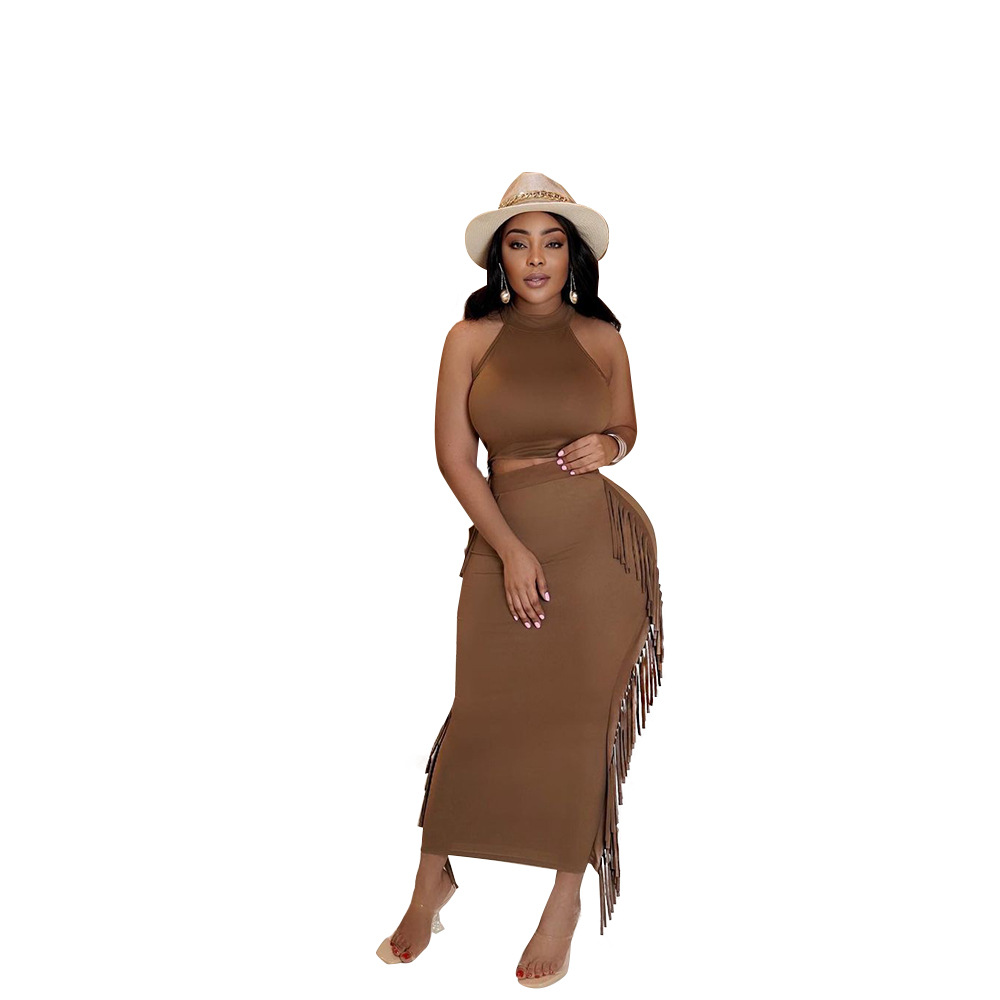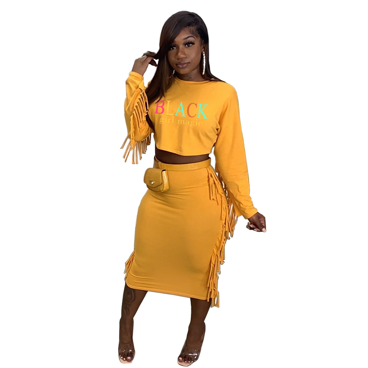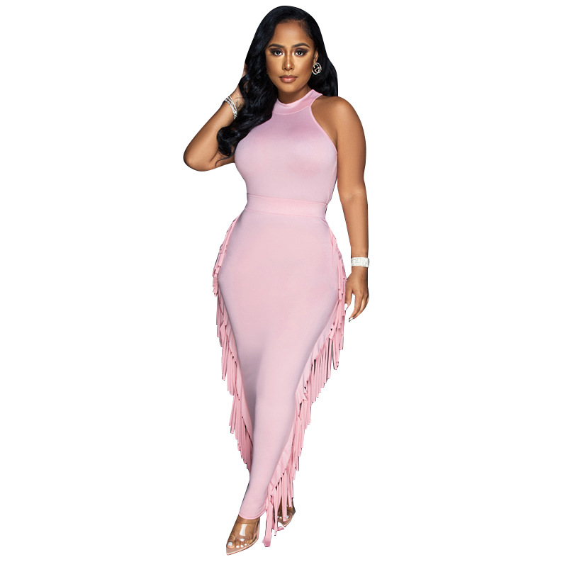 Vavcy spring autumn dress suit green t-shirt + wrinkle tassel sexy set