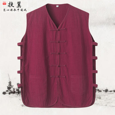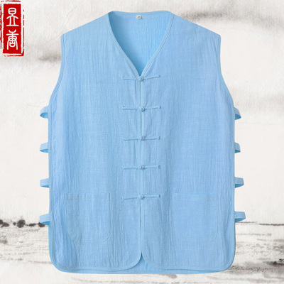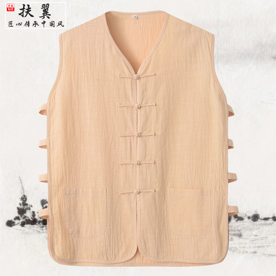 Vintage Chinese Mandarin Jacket Men's Summer Sleeveless Jacket Waistcoat with Disc Button on the Front Chinese Waistcoat Pure Co