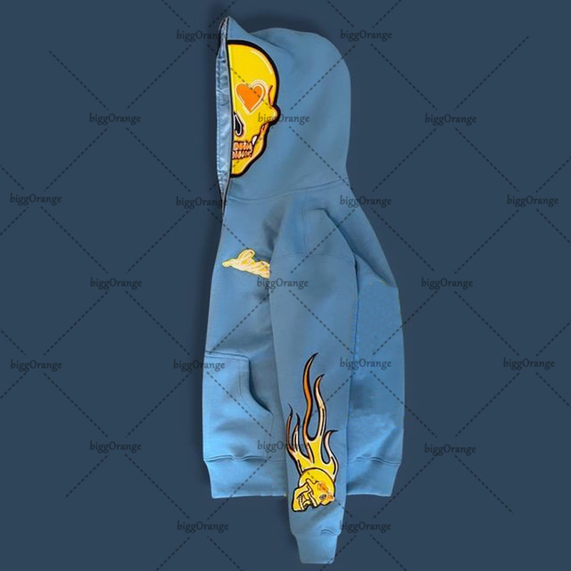 Vintage High Street Flame Skull Print Streetwear Hoodie Women's Harajuku Style Pop Sweatshirt Y2K Jacket clothes for teens
