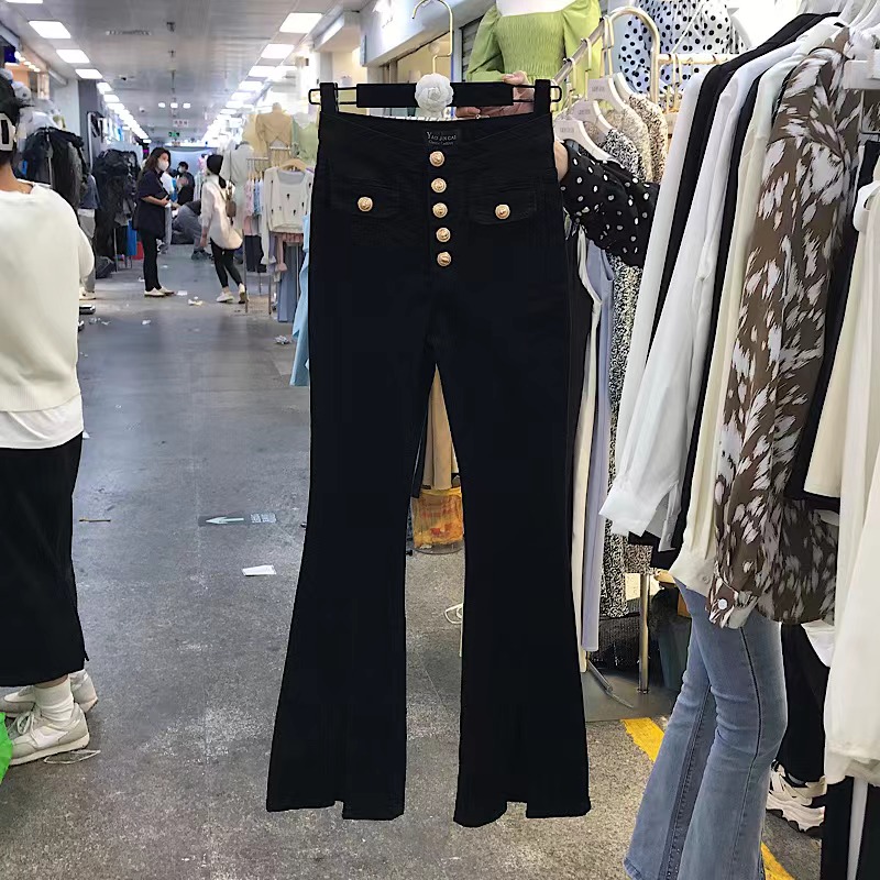 Vintage High Waist Elastic Slim Jeans Woman Split Flare Women Pants Single Breasted Spring Streetwear Denim Trousers