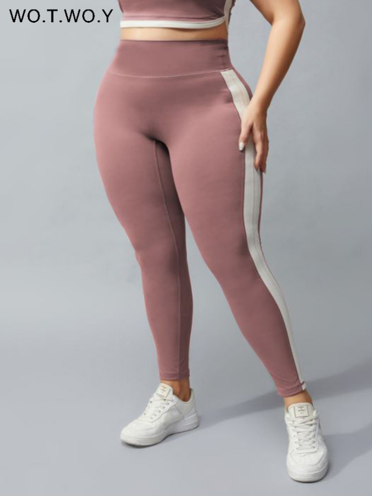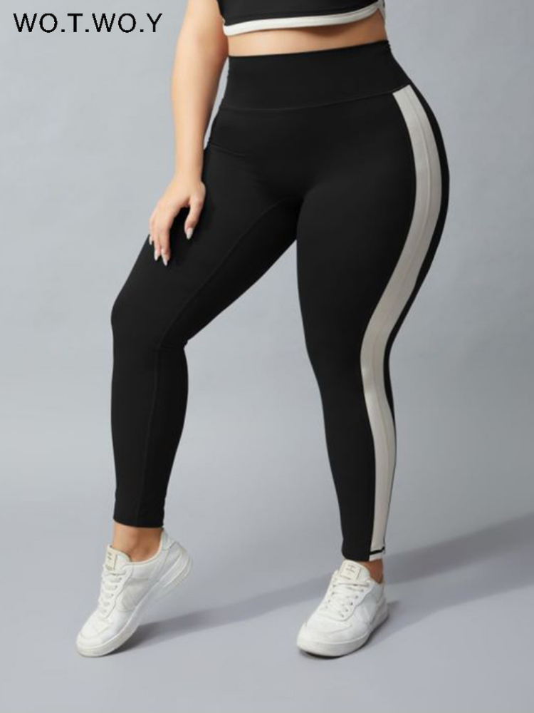 WOTWOY Plus Size Leggings Women High Waist Elastic Fitness Pants Female Skinny Training Hip Lifting Seamless Sweatpants