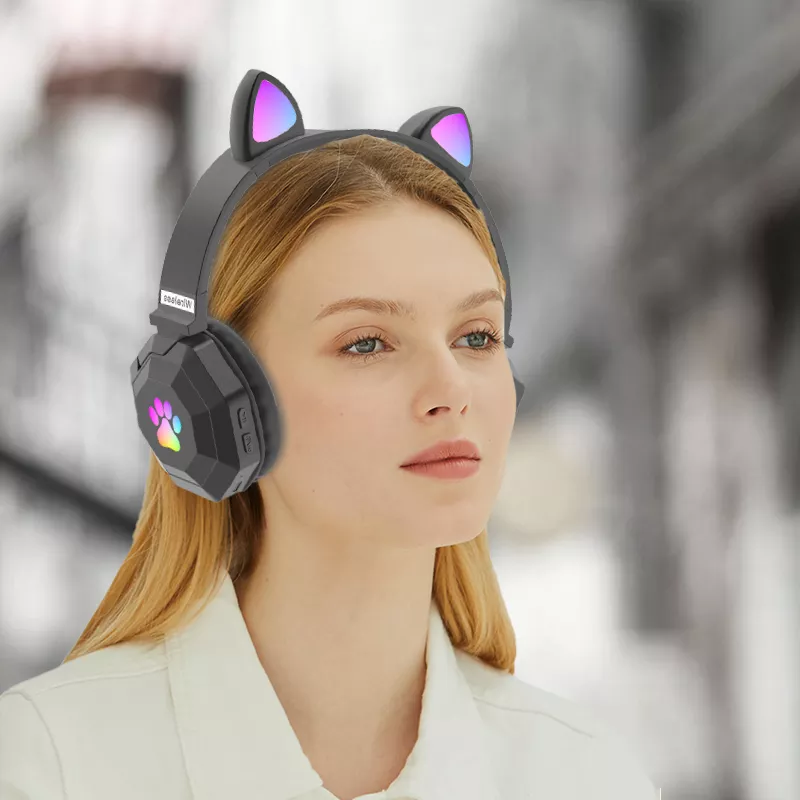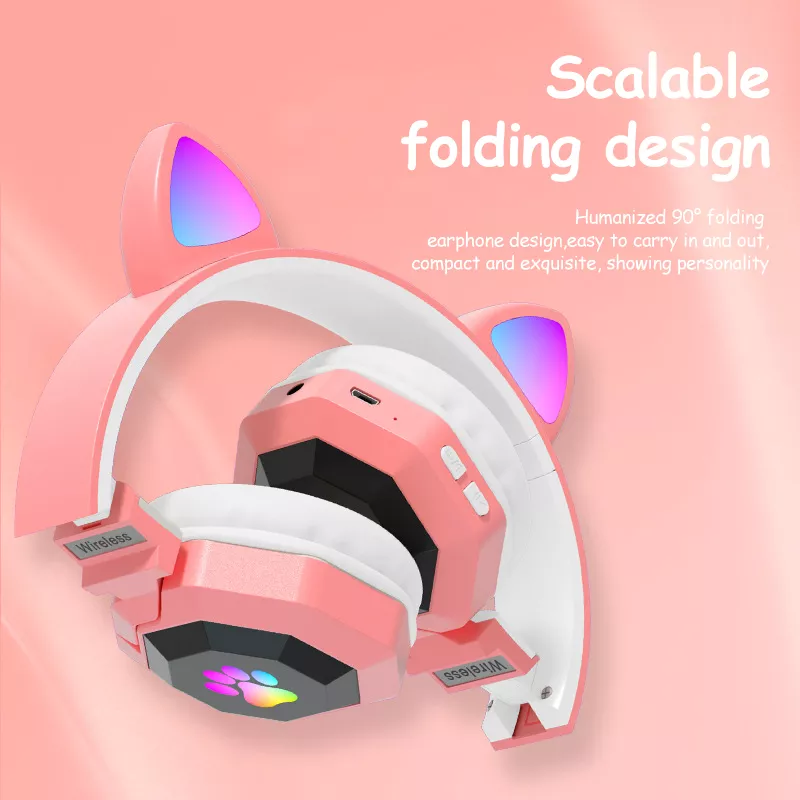 Wireless Headphone cute cat ear Bluetooth 5.0 Headset RGB stereo music Helmet Mobile phone with Micrphone Earphone Children Gift