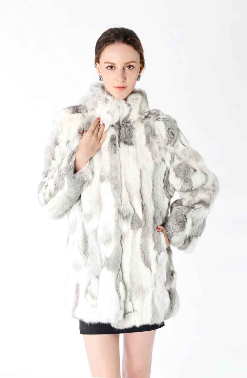 Women Real Rabbit Fur Coat Mandarin Collar Natural Fur Jacket Long Customize Female Dropshipping Overcoat HP147