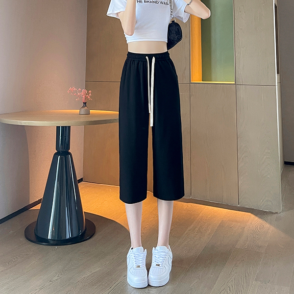 Women Capris Traf Straight Loose Wide Leg Short Pants High Waisted Casual Sweatpants Solid Trousers Y2K Summer