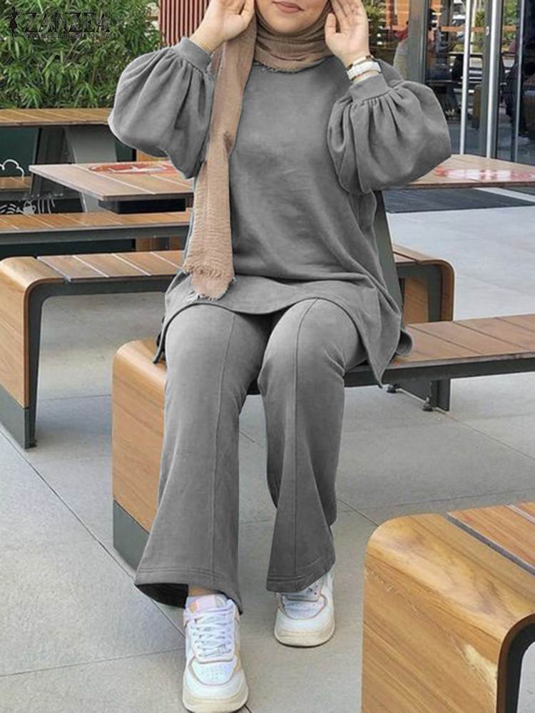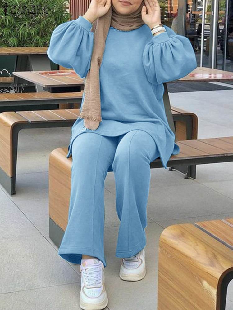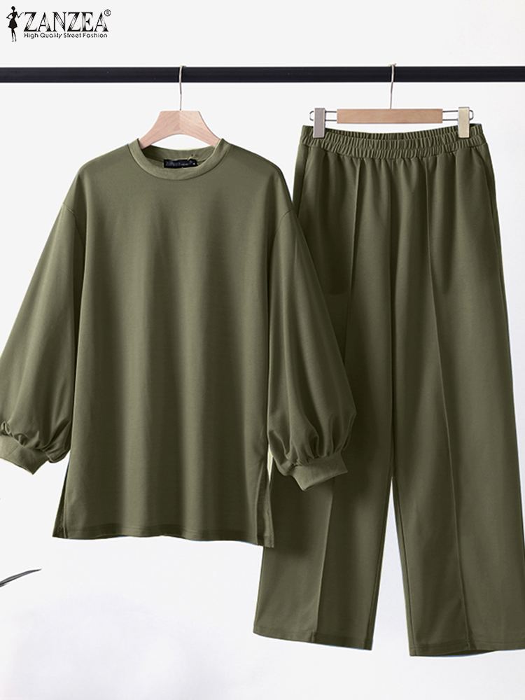 Women Full Puff Sleeve Casual Set ZANZEA 2 piece Set Muslim Urban Tracksuit Solid Loose Pant Suits Outifits Matching Set