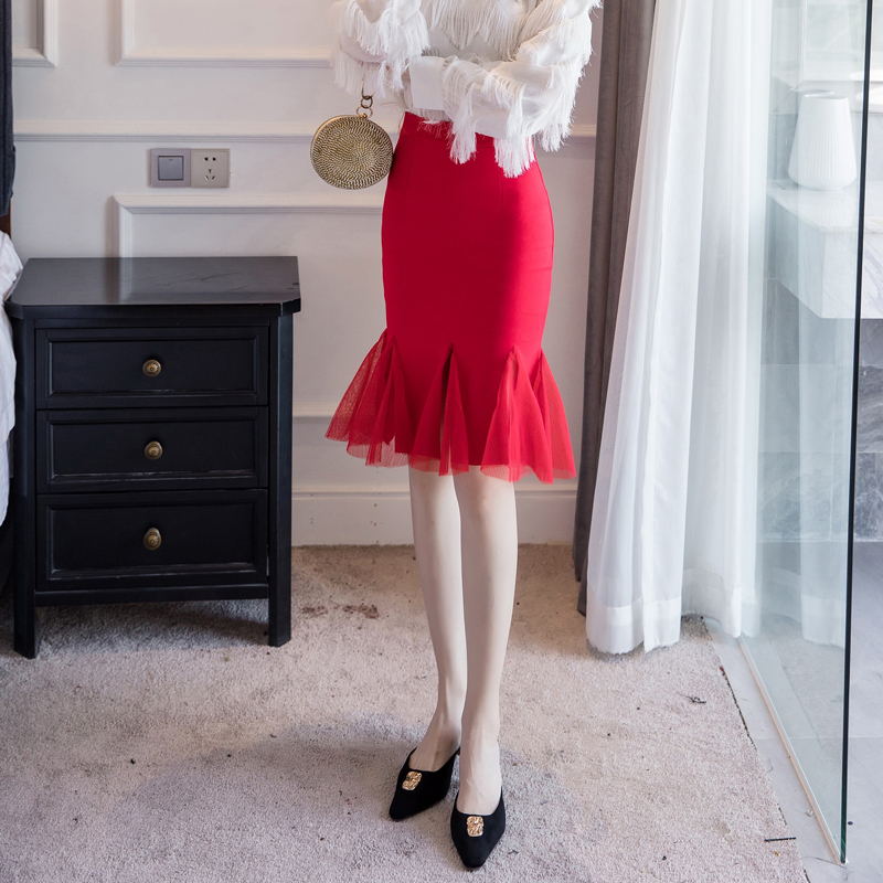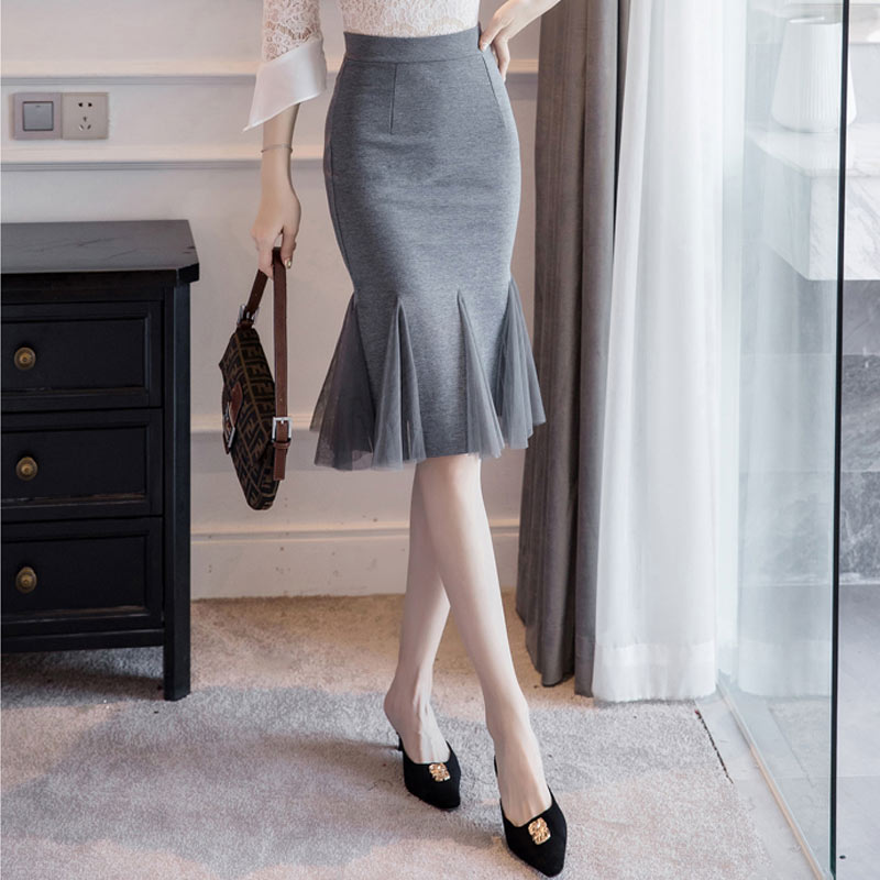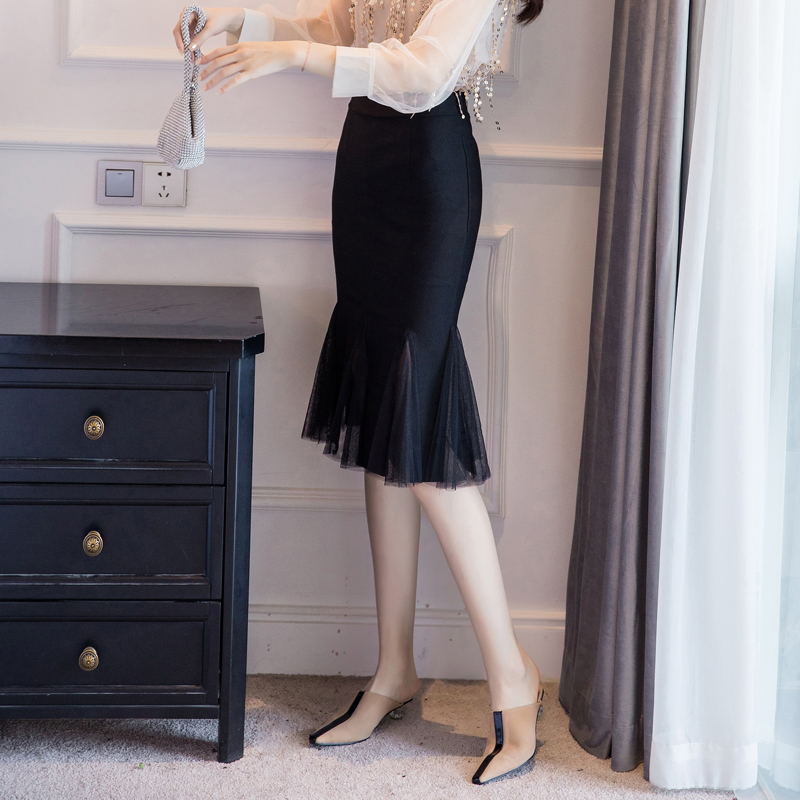Women Pencil Skirts High Waist Mesh Patchwork Mermaid Skirt Bodycon Sexy Skirt Elegant Stretch Skirts Female