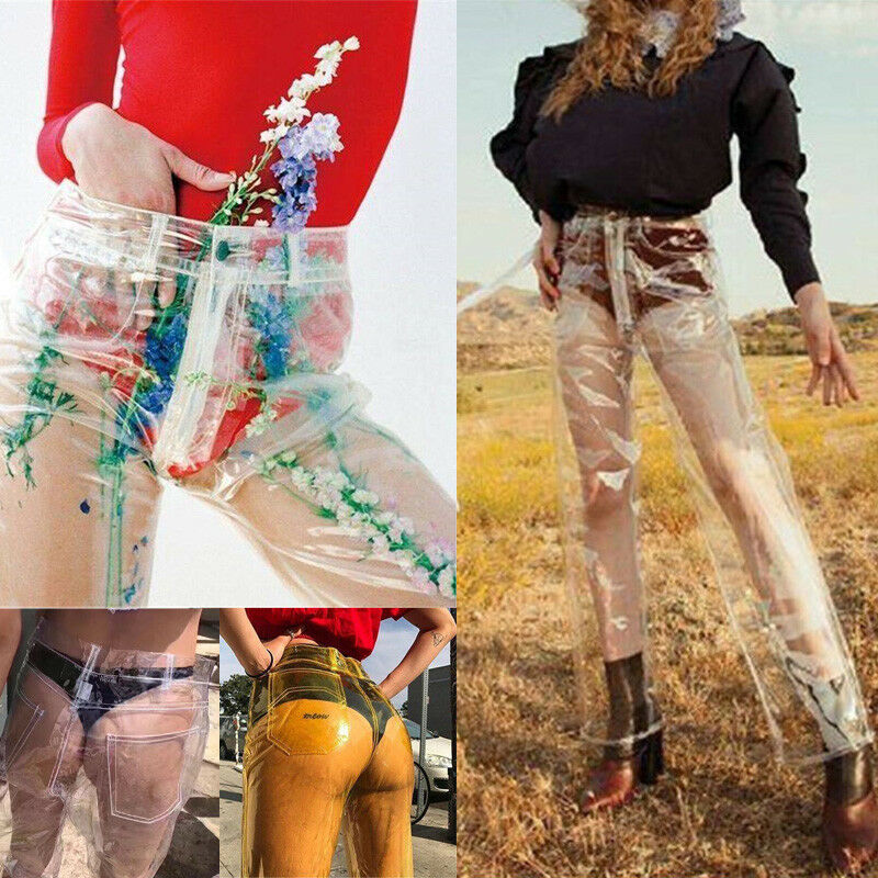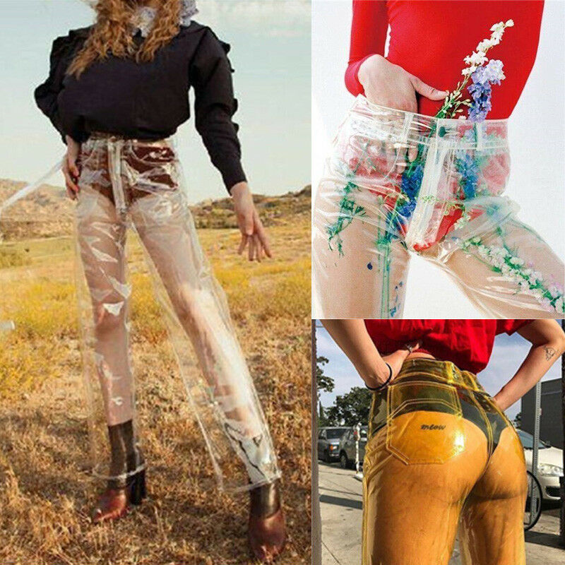 Women Transparency Wide Leg High Waist Pant Waterproof PVC Plastic Skinny Pants Loose Long Individuality Trousers