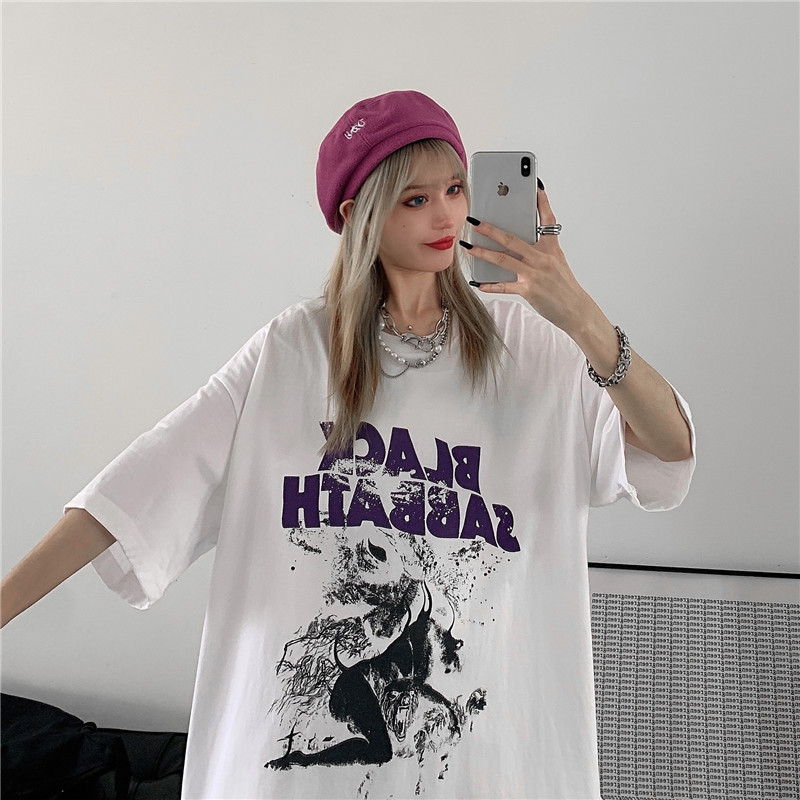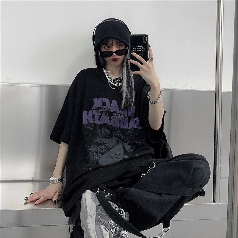 Women T-shirt Grunge Summer Goth Short Sleeve T Shirt Female Loose Streetwear Print High Street Harajuku Y2K Clothes Tops