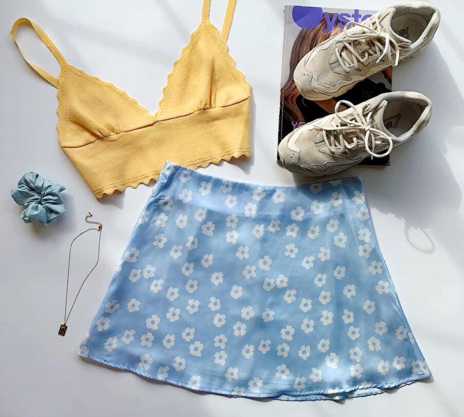 Women's Chiffon Floral Printed High Waist Skirts Casual Streetwear Lady Zipper Mini Skirt WDC6626