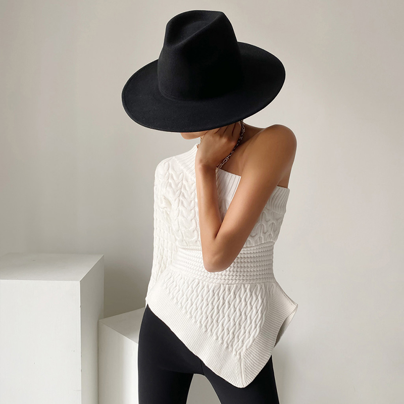 Women's Clothing White Knitting Sweater Irregular Patchwork Long Sleeves Casual Vintage Baggy Ladies Tops Autumn