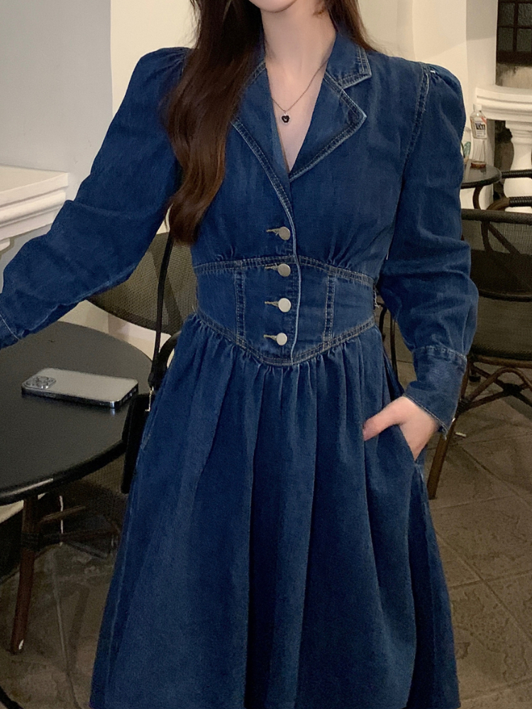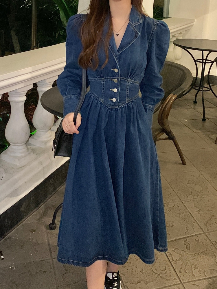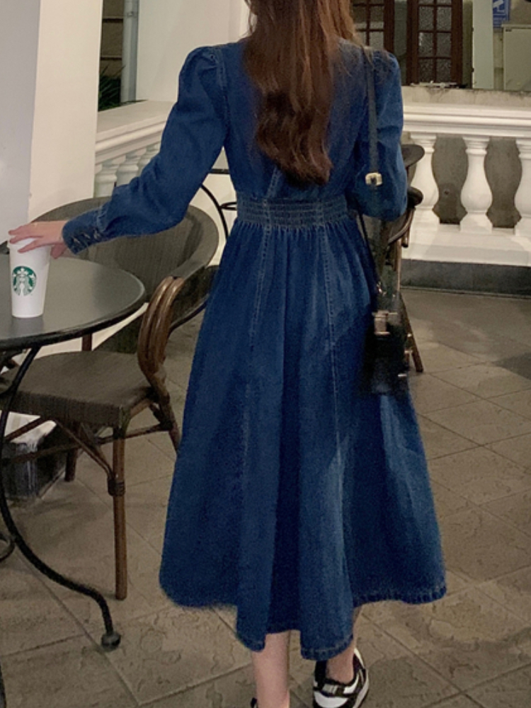 Women's Spring Autumn Casual Midi Denim Shirt Dress Long Sleeve Elegant A-Line Party Jeans Vestido Female Clothes