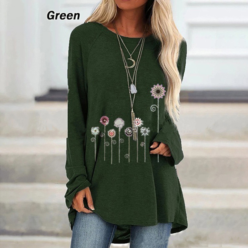 Women's autumn floral print blouse long sleeve round neck cotton shirt WX38