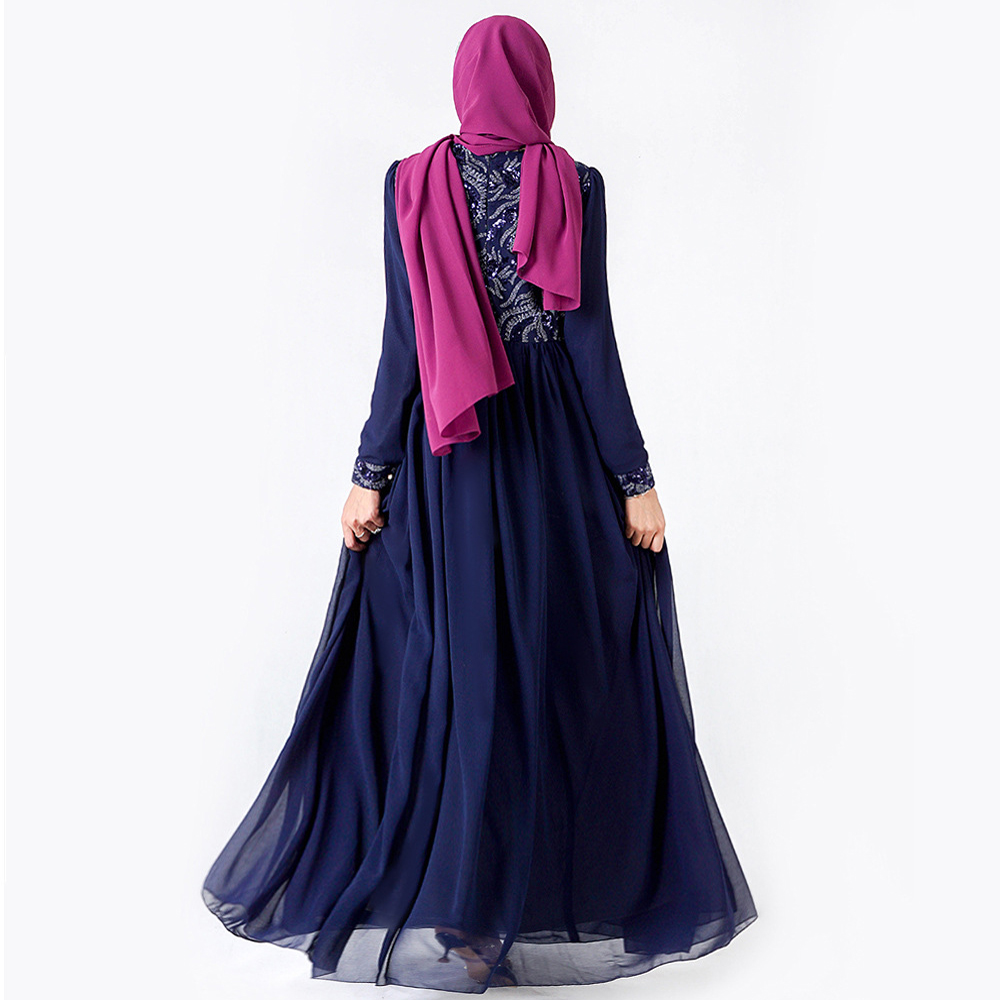 Y023 Women's Long Dress Abaya Modest Robe Ramadan Muslim Sequin 3D Embroidery Islam Chiffon Clothes Lace Without Hijab Scarf