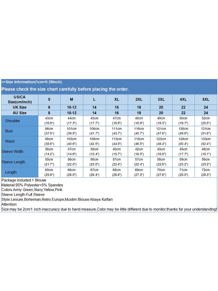 Style:Leisure,Bohemian,Retro,Europe,Muslim Blouse Abaya Kaftan