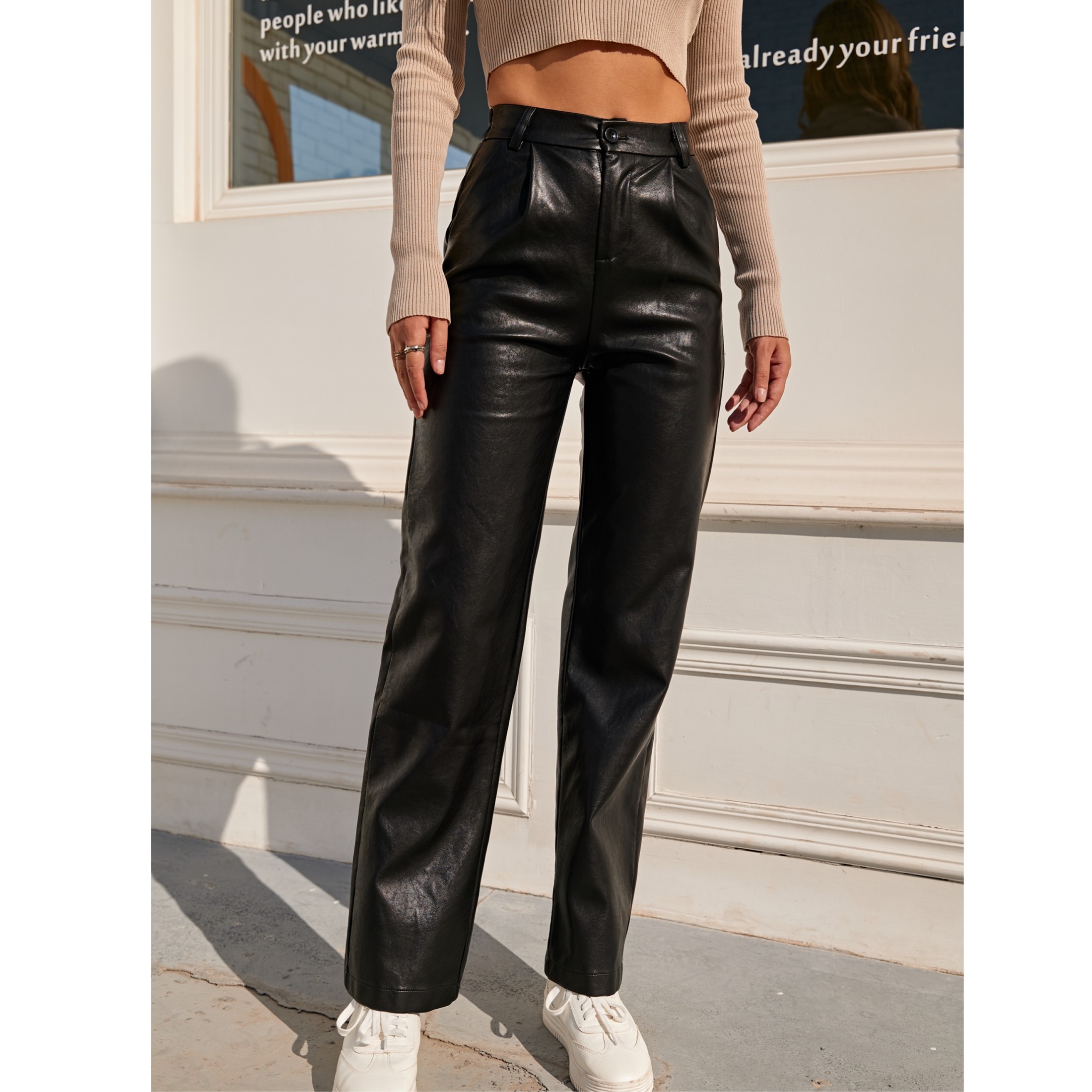 ZHISILAO Faux Leather Elastic Waist Cargo Pants Women Streetwear Vintage Loose Black Straight Trousers Mujer Spring