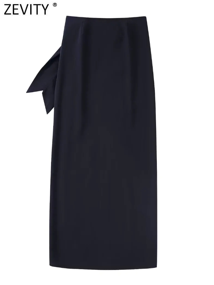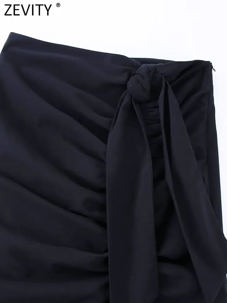 Zevity Women Solid Color Knotted Pleat Sarong Midi Skirt Faldas Mujer Lady Chic Back Zipper Black Slim Vestidos QUN1928
