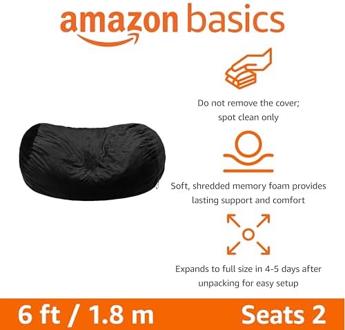 I bought the 6' lounger bean bag.First the PRO's:1.Easily the most awesome and comfy piece of furniture I have ever sat on.This is amazing!2.The cover is nice too.The material is soft and it is obviously well made.3.It might be a bean bag, but it actually looks nice.4.The price is sweet!You can use this as a couch and you won't find a comfy couch for under $200.5.It is an AmazonBasics product; you shouldn't be surprised that it is a good product.CON's:1.The measurements of 6'L x 4' W x 3' H are IF and ONLY IF the bean bag is full.Your bean bag does not ship full.It is mostly full, but not totally full.It will only fluff up to about 6' x 3.5' x 2.5.To get the max dimensions, you will need to by additional filler.Amazon should give people the option of a partly full, or a completely full bean bag.2.If you need more filler, AmazonBasics does not cover you.You will need to find a separate seller for the filler.3.AmazonBasics doesn't cover you period because replacement covers are also not available.You will need to find covers for a similar sized bean bag by a competitor such as Chillsacks or the over-priced Lov Sacks.It is nice to have a replacement cover.4.I had to buy filler to get the max size.I wanted something that someone could comfortably get up from once they had been seated.That meant adding more filler.That was a nightmare!Seriously, I was almost in tears.First I had to unzip the bean bag.There are two zippers.The first has a pull.The second one which is exposed after unzipping the first one, does not have a pull.This is for safety reasons.I had to work a paperclip into a hook to make a pull.Then I opened the filler.It was an ungodly mess.There is no easy way to add filler to the bean bag without making a horrible mess.All of this was necessary because Amazon didn't ship me a bean bag with enough filler, enough for the bean bag to be the dimensions advertised by Amazon.So, five stars because it is fabulous.....minus one star for the cost and frustration of having to fill the bean bag so that it actually is the dimensions advertised by Amazon.Should you buy this?Yes, by all means, but if you want the advertised dimensions; buy small amounts of filler that can be inserted INTO the opened, unzipped bean bag before pouring out the filler.This will still make a mess (it flies around), but the mess will not be nearly as horrible.You will pay more for the filler in 5 lb packages, but you will not have a nightmare like I did.