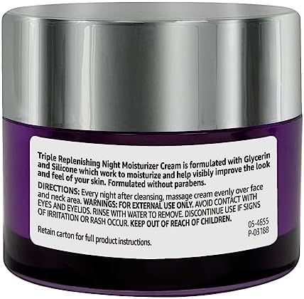 The Amazon Basics Triple Replenishing Moisturizer Night Cream has become an indispensable part of my evening skincare routine. From the very first use, I was impressed by its luxurious texture and how quickly it absorbs into my skin without any greasiness.This night cream truly delivers on its promise of intense hydration. I wake up every morning with skin that feels soft, supple, and incredibly nourished. The triple replenishing formula works wonders, leaving my skin looking revitalized and radiant.What sets this night cream apart is its affordability without compromising on quality. The generous amount provided in the jar ensures long-lasting use, making it a great value for money.Furthermore, I appreciate that it's fragrance-free, perfect for those with sensitive skin like mine. The packaging is sleek and functional, making it easy to dispense just the right amount of product.Overall, I highly recommend the Amazon Basics Triple Replenishing Moisturizer Night Cream to anyone seeking a potent yet budget-friendly solution for hydrated and revitalized skin. It has exceeded my expectations, and I will definitely be repurchasing!