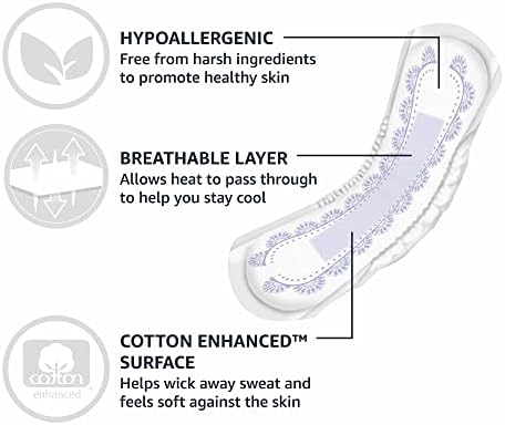 Amazon Basics Incontinence Pads for Women locks in 20% more wetness than leading bladder control pads while providing discreet, confident protection. Dual odor control system effectively helps neutralize and stop odors to keep you feeling fresh throughout the day. Dri-Fit helps to control moisture and temperature to help your skin stay dry, comfortable and healthy. Breathable moisture barrier allows air, heat, and humidity to escape which allows the skin to breathe.