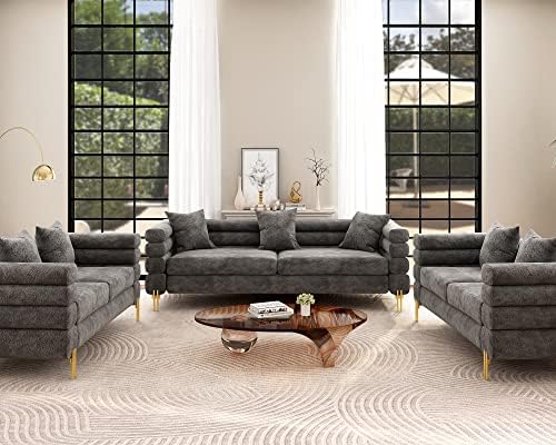 I am so pleased with this purchase. The sofa was very easy to put together with the simple directions that were I included. It is very comfortable and it looks great. I bought a few extra cushions to complete it. The price is such a deal. The only thing I would have preferred is wooden legs. The gold is just not my first choice, but it works okay. I should have painted them black prior to assembly. The legs also may need something underneath if you have a soft flooring. They are very skinny, but sturdy.Even considering the gold legs/feet, I still love it and would purchase it again.
