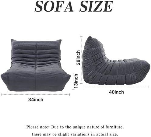 Ended up buying two of these chairs because they are very comfortable, durable (our kids jump all over them and build forts with them etc) and they look great in our living room. They are light enough to move to other rooms. The fabric is soft and fits the chair well, no saggy excess material. It will take its shape quickly upon opening and in about a week the chair will look its best. It’s fun to unpackage because it’s vacuum sealed and even comes with a tool to safely remove the plastic. We like to use a pillow on the chair to give extra lumbar support.