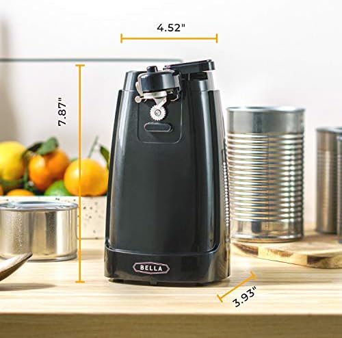 BELLA Electric Can Opener and Knife Sharpener, Multifunctional Jar and Bottle Opener with Removable Cutting Lever and Cord Storage, Stainless Steel Blade, Black