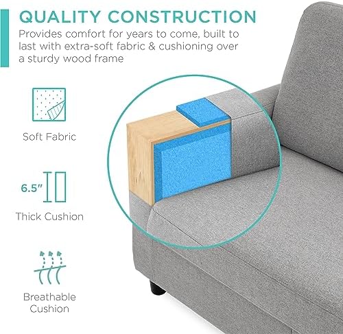 For the price this couch is WELL worth the money. I was very skeptical because I purchased a "box" couch before and was unhappy with it, but I now live on the second floor and was not able to fit a standard couch through the entrance. So I had to resort to this. I spent alot of time choosing what couch and decided on this one.I received both boxes the next day I ordered it and putting it together was a breeze. The couch is firm but comfortable (I consider myself pretty picky when it comes to comfort). It is not huge (think loveseat) but it is a good size and not to my standards considered "miniature" as some box couches are.**PLEASE NOTE that the cushions for the seats may not expand all the way, HOWEVER all I did was take a blow dryer and warm up the foam inside and it worked very well! The cushions are almost perfect now!Overall an EXCELLENT buy for the money. I highly recommend this couch!!**I was not endorsed or received anything free in exchange for my review.