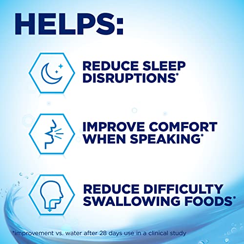 If you combine this with Xylimelts (night use) they both really help the issue. I was having troubles with my mouth being so dry. That swallowing pills sometimes would get stuck in my throat and even certain types of food that was dry would get stuck in my throat and it would take me quite a bit of liquid following it to get the pills or food to move. That seems to have mostly gone away since I've started using these two in conjunction with one another within a week or so time wise.I would highly recommend. They were recommend by the dentist, so gotta trust in that as she was right.