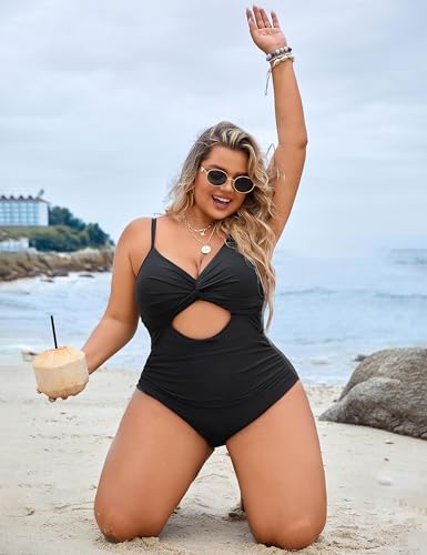 Plus Size bathing suits featured with removable padded push up bra and twist front design, provide you sturdy support and shaping.