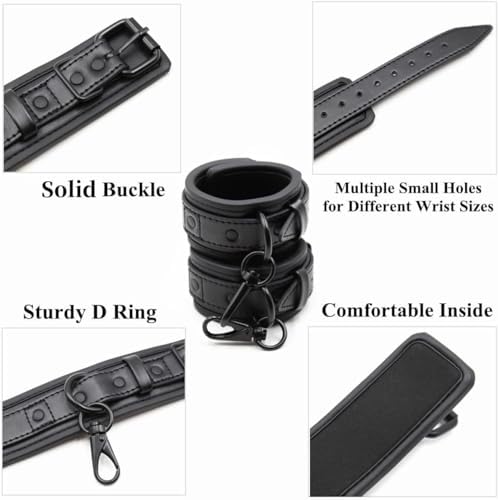 - PU leather material of the b-ondage cuffs are strong and are lined with very soft.