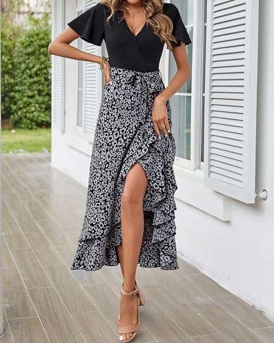 BTFBM Women Casual V Neck Maxi Dress Boho Beach Ruffle High Low Flowy Long Dress