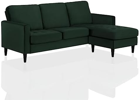 Glamify your sanctuary with the CosmoLiving Strummer Sectional Sofa. Covered in lush green velvet upholstery, the sofa is perched on sleek contrasting black wooden legs for durability. Here are the deets: the Strummer’s compact interchangeable design features a fab floating chaise that can be positioned on either side for full on versatility and comfort. With its narrow mailbox arms and modern tufting, this sectional gives us all the vintage glam vibes. Run, don’t walk to make our CosmoLiving Strummer Sectional Sofa the fiercest new addition to your space.