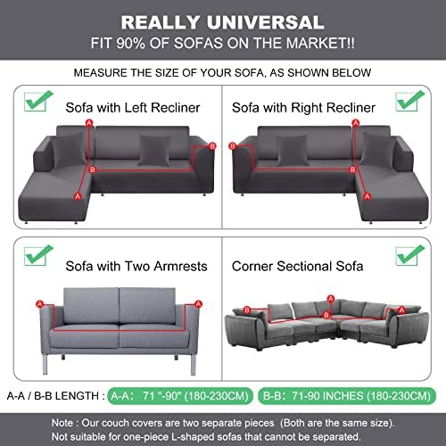 This 2-piece stretch sofa cover fits an L-shaped sofa and consists of 2pieces that are combined separately. Please make sure and measure yoursofa size before buying.