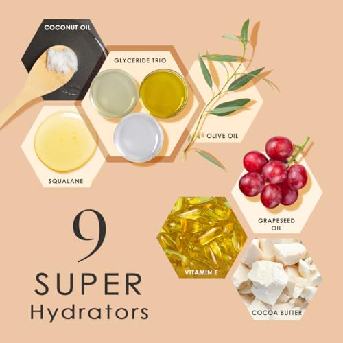 Water, Olea Europaea (Olive) Fruit Oil, Stearic Acid, Hydroxystearic/Linolenic/Oleic Polyglycerides, Dimethicone, Glycerin, Theobroma Cacao (Cocoa) Seed Butter, Bis-Diglyceryl Polyacyladipate-2, Cyclopentasiloxane, Glyceryl Stearate, PEG-100 Stearate, Vitis Vinifera (Grape) Seed Oil, Cocos Nucifera (Coconut) Oil, Squalane, Cetearyl Alcohol, Ceteareth-20, Peucedanum Graveolens (Dill) Extract, Pyrus Malus (Apple) Fruit Extract, Tocopherol, Dipotassium Glycyrrhizate, Ursolic Acid, Butylene Glycol, Dimethiconol, Acrylates/C10-30 Alkyl Acrylate Crosspolymer, Ethylhexylglycerin, Hexylene Glycol, Caprylyl Glycol, Sodium Hydroxide, Xanthan Gum, Disodium EDTA, Phenoxyethanol, Fragrance