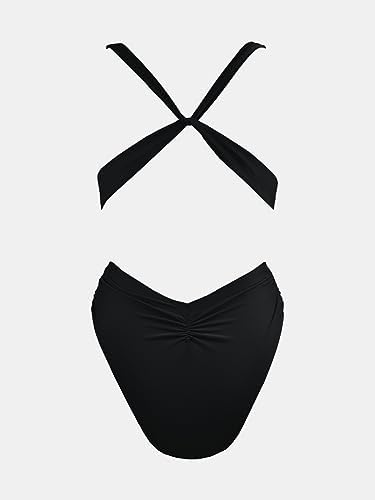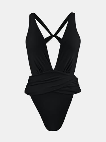 CUPSHE One Piece Swimsuit for Women Bathing Suit Cut Out Cross Back Tie Deep V Neck Ruched High Cut