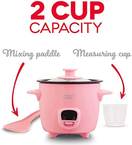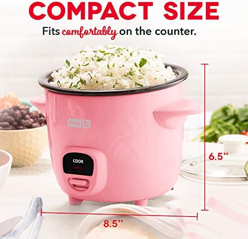 DASH Mini Rice Cooker Steamer with Removable Nonstick Pot, Keep Warm Function & Recipe Guide, Half Quart, for Soups, Stews, Grains & Oatmeal - Pink