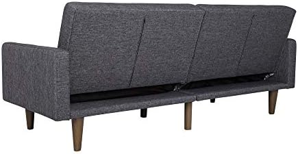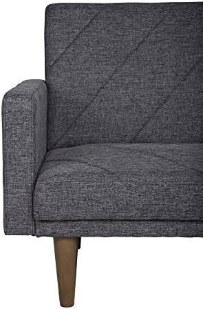 New trends in furniture design are bringing back the days of bold lines, low-profile shapes and wood accents. The Paxson Futon combines all three for a look that will add a little modern retro to your home. Choose from a variety of finishes with intricate diagonal stitching—a real mid-century must-have. The rounded solid wood legs add a touch of warmth and offer plenty of extra support. Plus the split back design of this sleeper sofa is made to offer each guest their own level of comfort, from sitting up to lounging back. Or lay flat both seat back cushions to create a comfortable place for overnight guests to sleep. The Paxson is ideal for small spaces while always making a big, bold statement. We’ve also included padding under the feet so your floors will always look great.
