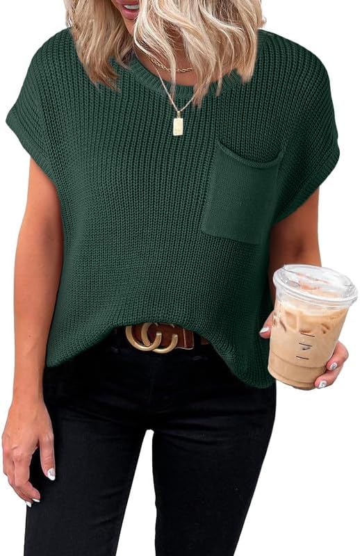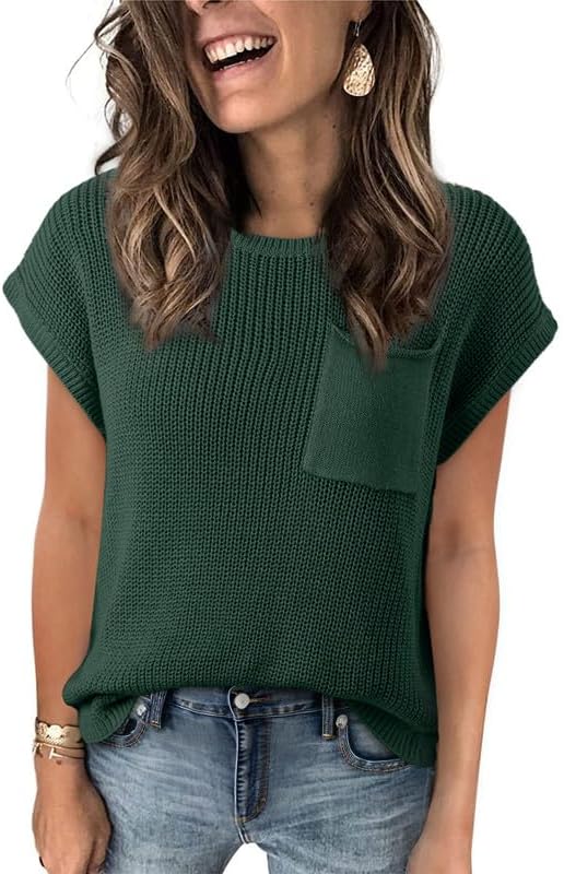 Dokotoo Women's Casual Short Sleeve Loose Tunic Tops Lightweight Knit Spring Pullover Sweater Blouses