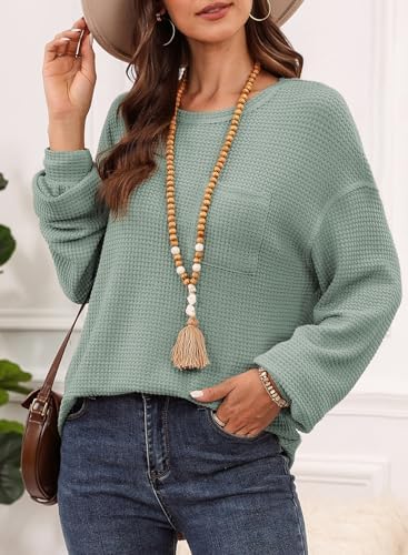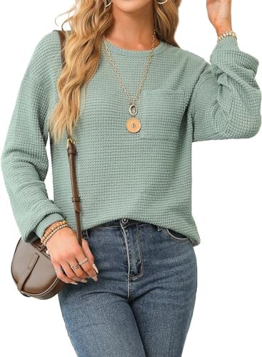 Dokotoo Womens Tops 2024 Long Sleeve Waffle Tops