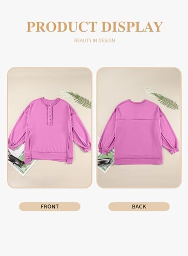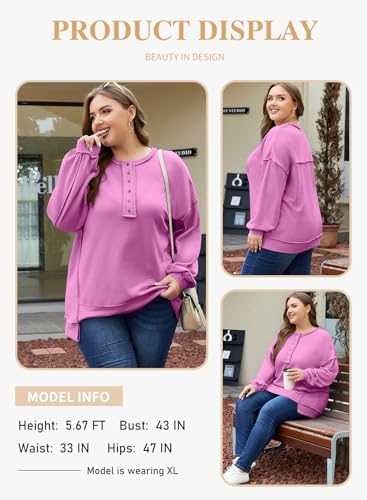 Eytino Women's Plus Size Sweatshirts Button Henley Neck Casual Long Sleeve Oversized Pullover Tops Shirts(1X-5X)