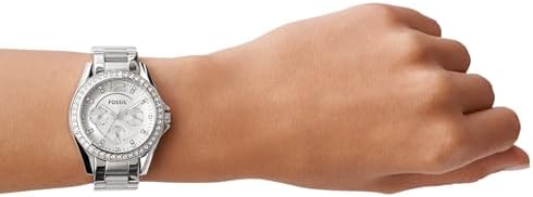 Beautiful watch but way too heavy and large for my 5 foot 2 inch small boned frame so I had to return it.I have had a fossil watch that looked so similar to this one years ago that I loved and got lots of compliments for it…only it is much smaller and not nearly as heavy.I found it in my drawer and decided to wear it again (as I find it annoying to have to look in my purse for my cell phone when out just to check the time).I got a new battery for my older fossil watch and it worked fine…for 4 months and then quit.I would have had to pay as much as the battery itself for a guarantee which I did not recalling that previously, batteries for my fossil watch lasted a very long time. So decided to just get a new fossil watch.I had no idea it would be so heavy and large since it looked like my old one… Hope I find a similar one to my old one that I loved.