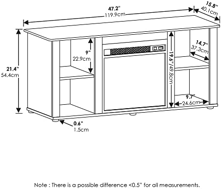 A must-have for living areas and entertainment spaces, this TV stand includes an electric fireplace for creating a relaxing ambiance and heating up your living area. Four open compartments with adjustable shelves to accommodate your media components, accessories, movie collection and more. This series is made of CARB Grade composite wood and manufactured in Malaysia. There is no foul smell, durable and the material is stable. A simple attitude towards lifestyle is reflected directly on the design of Furinno Furniture, creating a trend of simply nature. Care instructions: wipe clean with clean damped cloth. Avoid using harsh chemicals. Pictures are for illustration purpose. All decor items are not included in this offer.