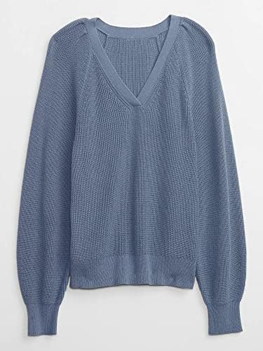 GAP Women's Ribbed Volume Sleeve Vneck Sweater