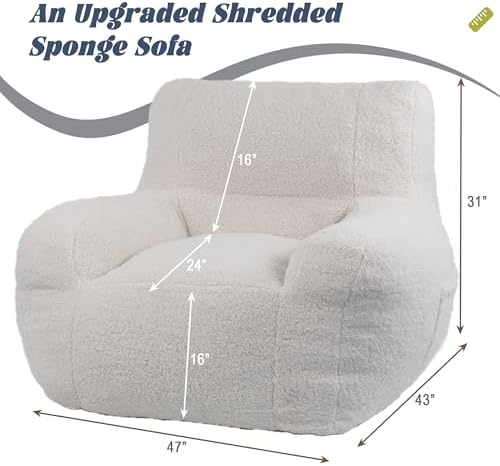 See Details Customer Reviews 4.5 out of 5 stars 7 4.5 out of 5 stars 7 5.0 out of 5 stars 8 5.0 out of 5 stars 8 — Price $159.99 $159.99 $169.99 $169.99 — Color White Gray Beige Gray Gray Fabric lambswool lambswool Faux Fur Faux Fur faux suede Filling High-design Foam Chunks High-design Foam Chunks High-design Foam Chunks High-design Foam Chunks 25D Sponge Size 47” x 43” x 31” 47” x 43” x 31” 51”x48”x31”+ 21”x8”x8" pillow 51”x48”x31”+ 21”x8”x8" pillow 33"D x 66"W x 18"H Purpose LivingRoom/Bedroom/Playroom LivingRoom/Bedroom/Playroom LivingRoom/Bedroom/Playroom LivingRoom/Bedroom/Playroom Sofa Bed for Playroom/Bedroom