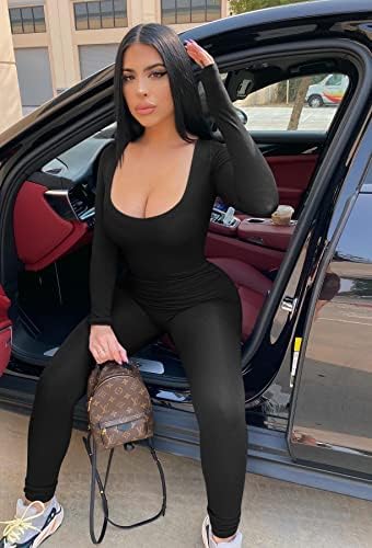 GOBLES Women's Sexy Long Sleeve High Waist Zipper Back Bodycon Jumpsuit Rompers