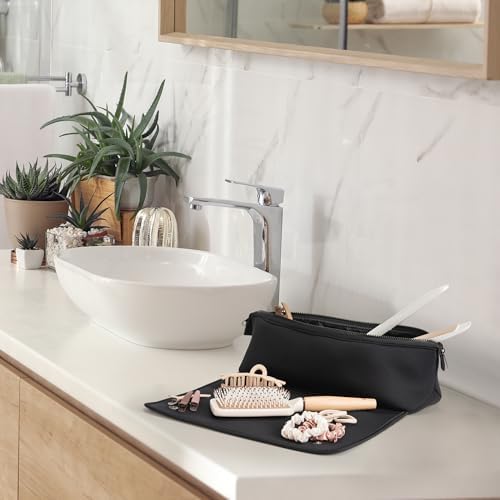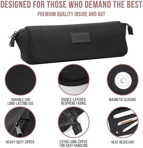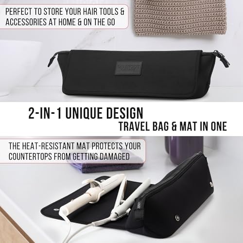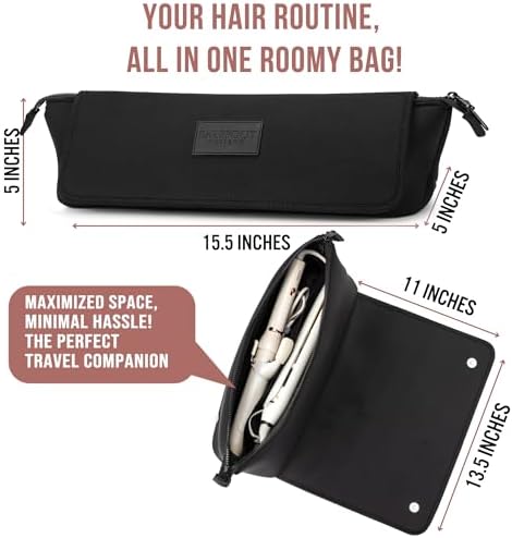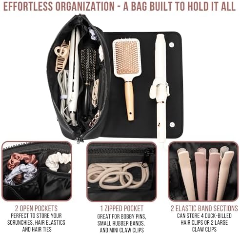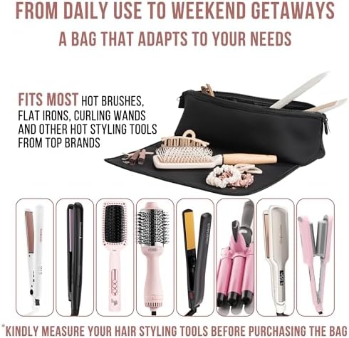 I just love this bag. My hair tools are always taking so much room in my suitcase and this makes it so easy to keep everything for my hair in one place. It has a lot of room, I can store my hair brush, flat iron, and slim hair dryer brush as well as hair ties that I can neatly store in the inner pockets. Then there is the heat mat, I can have my heated tools on the mat without worrying about burning the surface they're on. The quality is also good, durable and soft.