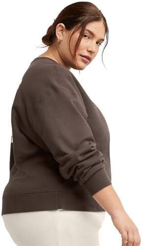 This Hanes Originals women's plus size crewneck sweatshirt is made with a soft, cotton-rich fleece designed to keep you warm without the bulk. In true crew fashion, it offers a ribbed collar, cuffs, and hem. The relaxed silhouette and dropped shoulder combine style with comfort for a look you'll love. Featuring cotton sourced from American farms, this women's fleece crew is the perfect cozy antidote to a chilly evening. The cozy pullover is finished with retro-inspired "Good Days Ahead" graphic for an extra touch of style. Pair it with leggings, sweats, or jeans for an effortlessly cool finish.