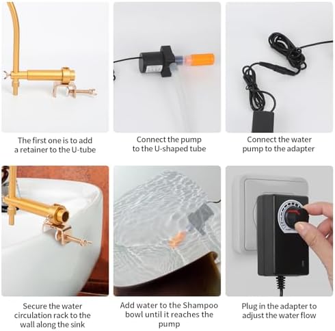 Head Spa Water Circulation Equipment, Portable Shampoo Bowl Waterfall Head Spa, Fits Shampoo Bowl for Salon and Beauty Salon, Gold (SXH-0001, Average Size)
